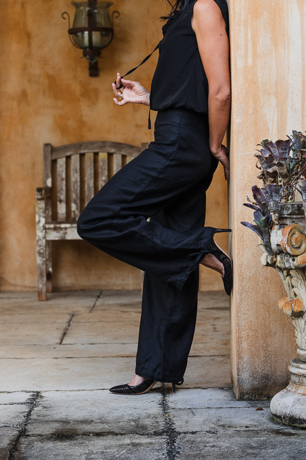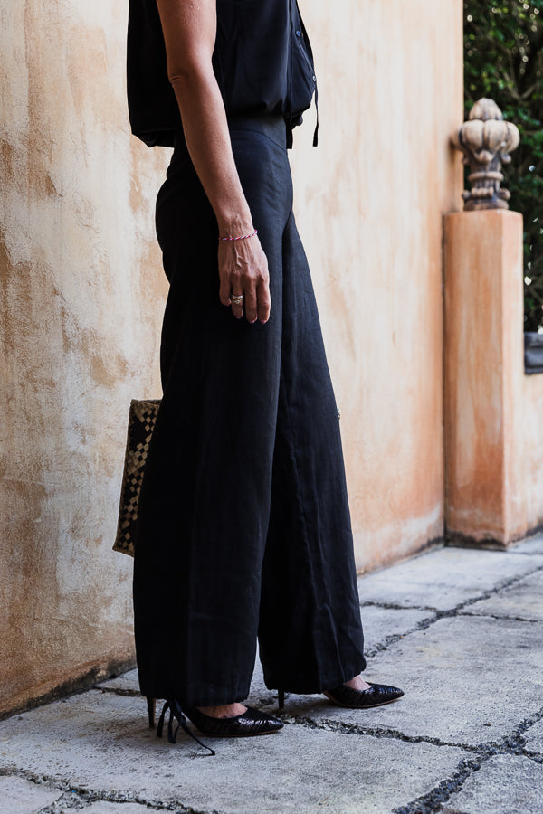 Crafted from breathable, high-quality linen, these wide-leg pants bring together comfort and modern style.